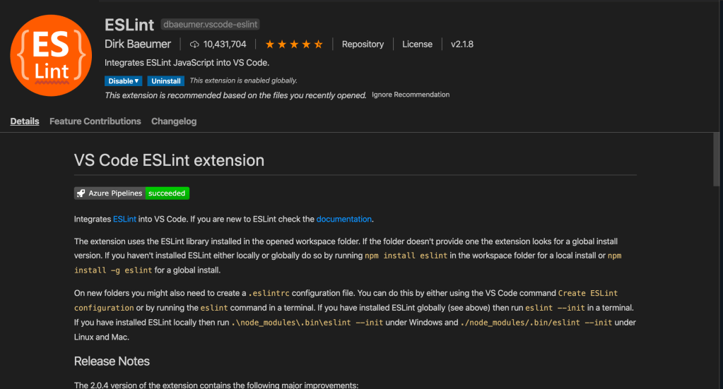 In this post, I’m going to be going over ESLint but also how to use it within the text editor of Visual Studio Code (VS Code). Other text editors offer similar plugins and extensions for using ESLint; however, VS Code is one of the more popular editors out there currently for Javascript and showing the benefits of using ESLint within a tool helps provide a better overall picture of your development workflow. For more information and to download VS Code, go to https://code.visualstudio.com/.